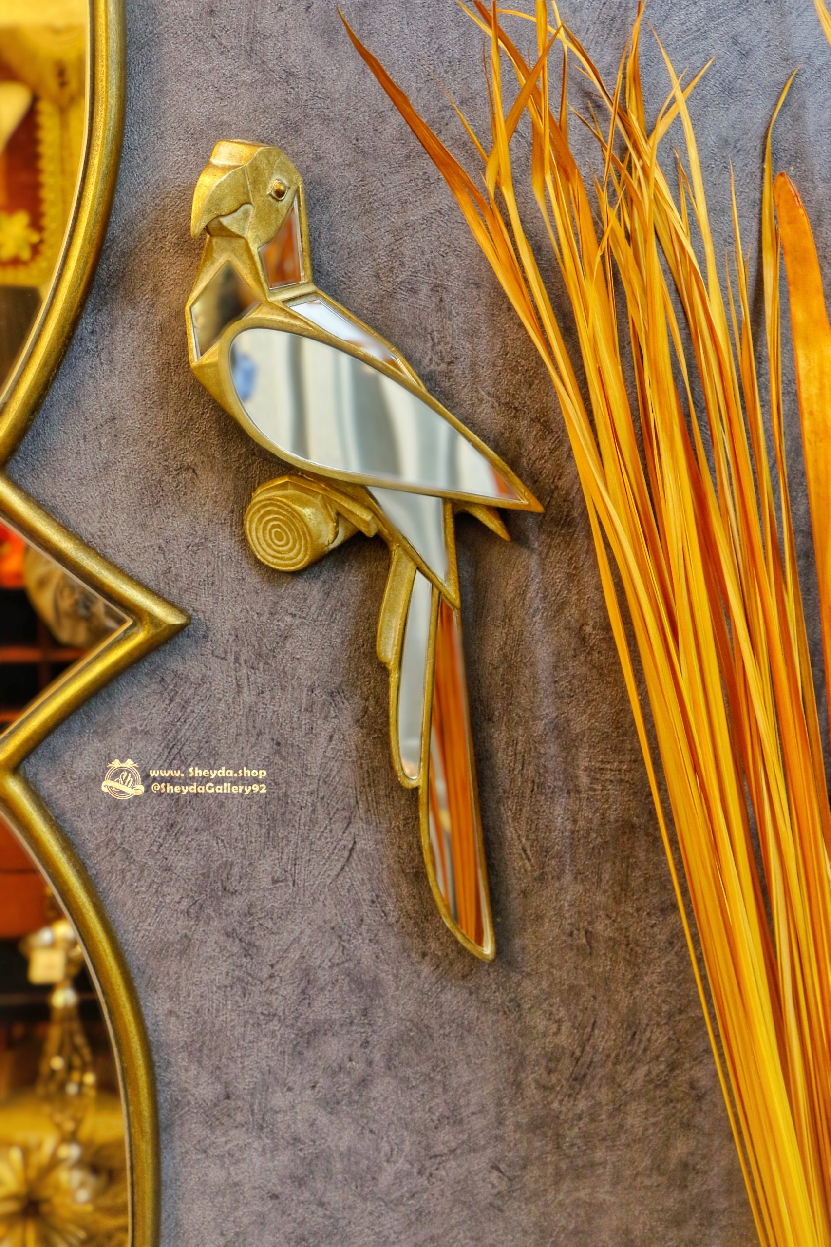 شیدا گالری » آرشیو محصولات » دکوراتیو » دیوارکوب جفتی آیینه طوطی طلایی